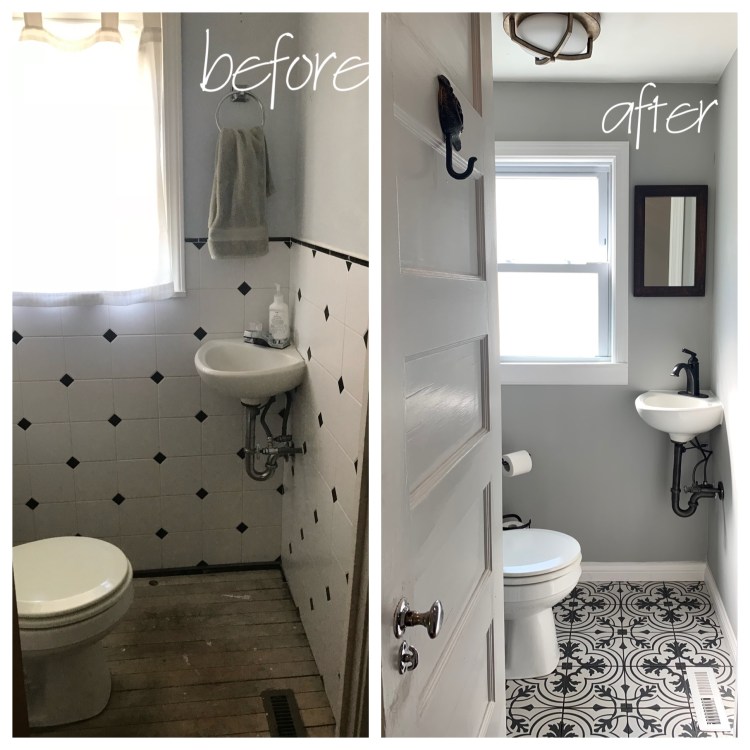 How you ask? Peer pressure. We had planned to have people over in a weeks time when we realized it would be embarrassing to have people over with our half bath looking like it did. So we moved mountains and made it happen. I could not be happier with the result of our tiny bath – hope you agree!